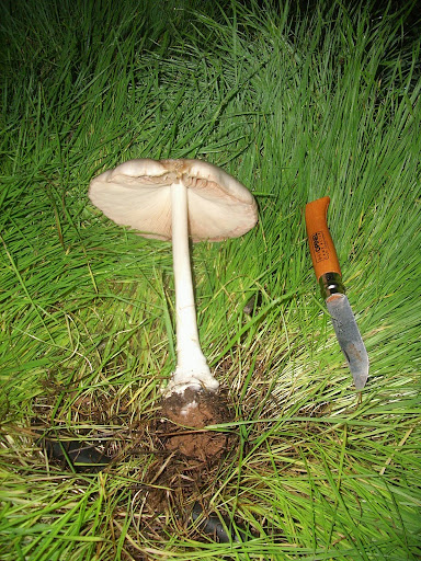 hay que ver como resalta la seta sobre el verde en una foto de noche.muy bonita la foto.buena idea. saludos