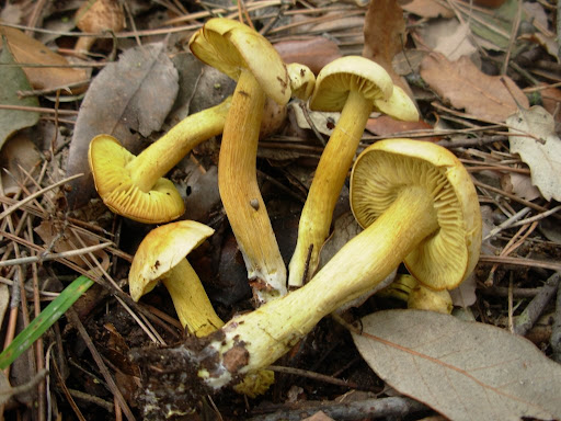 Tricholoma sulphureum con un olor que tira patrás, han salido por doquier en grandes cantidades.
