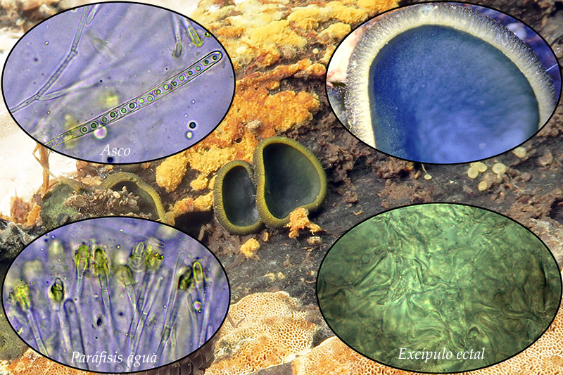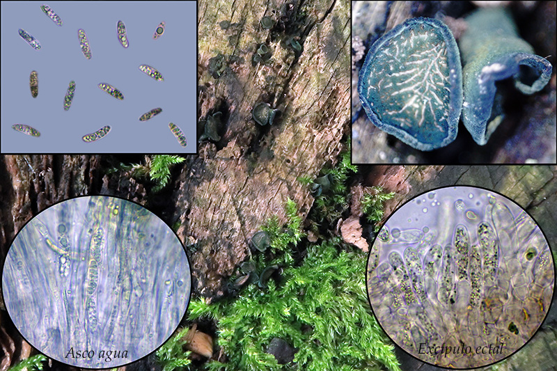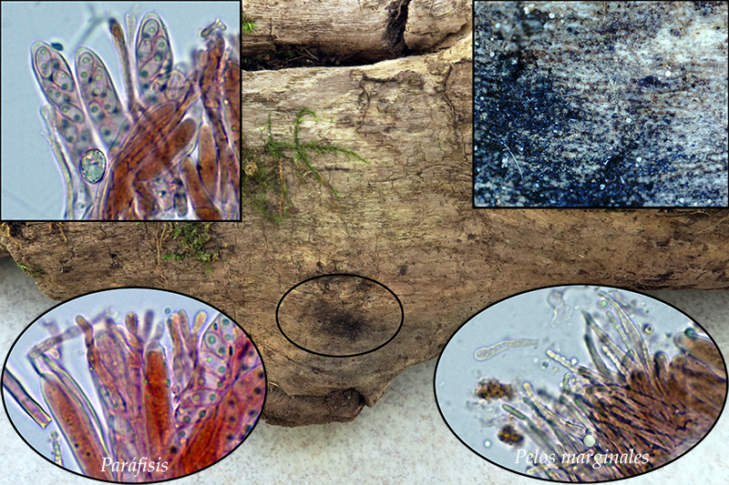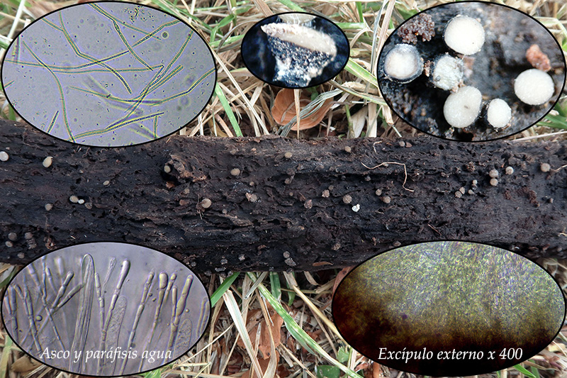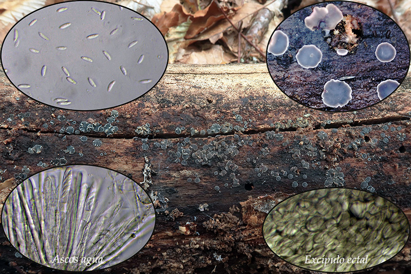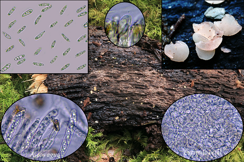 Sobre madera de Fraxinus sp., una muy diminuta Hyaloscypha, agradecer a Hans-Otto Baral su ayuda en la determinación de la especie, la