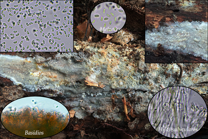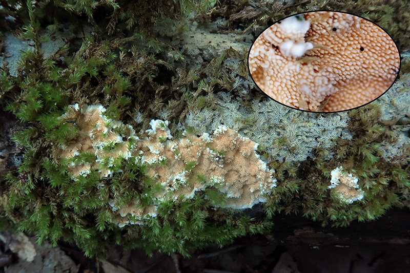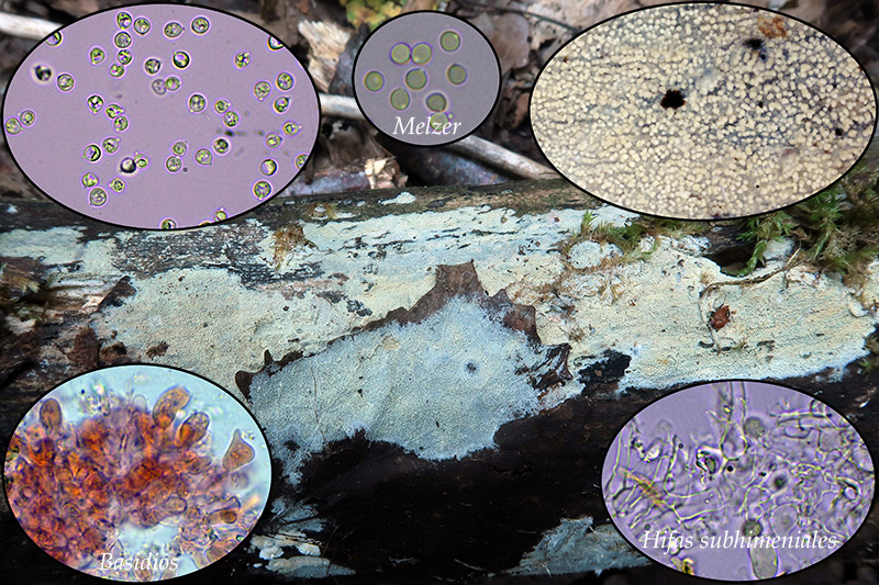 Una Corticiaceae sobre tronco tumbado de haya, la