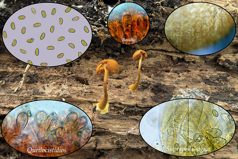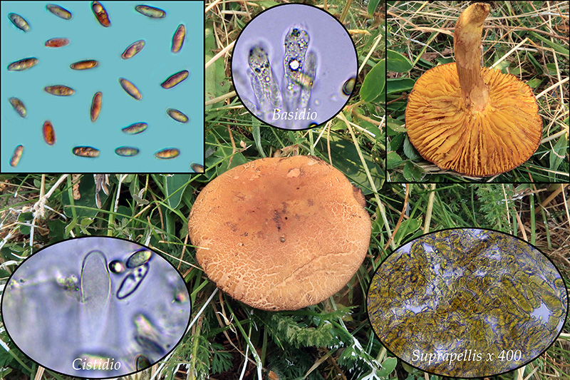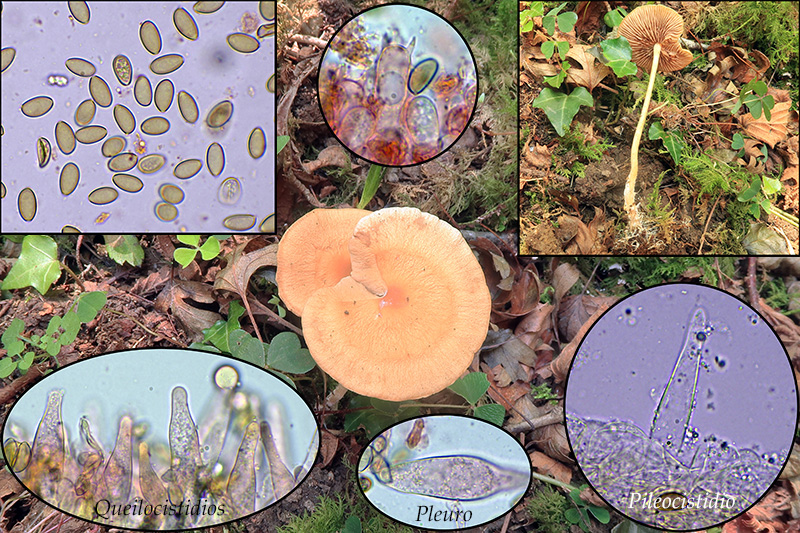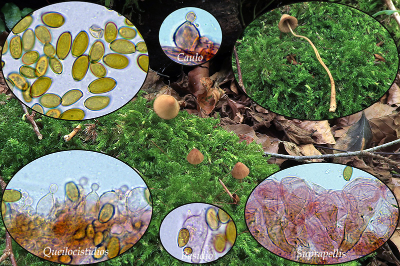Brotando del suelo entre el musgo, con caulocistidios lecitiformes y grandes esporas, tenemos la