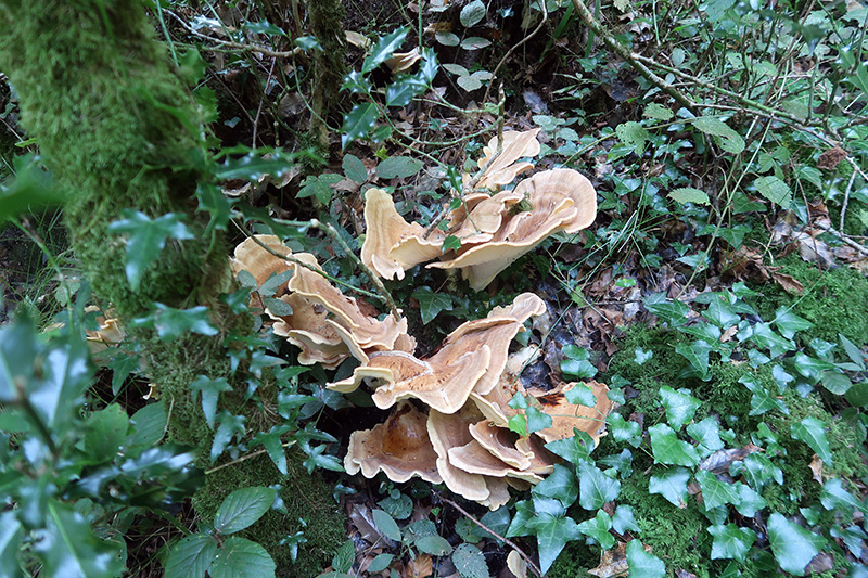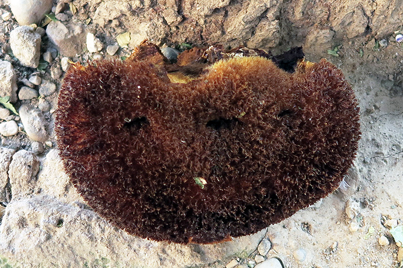 Otro ascomiceto, que aunque se considera muy común, se me había escapado hasta ahora, brotando de manera masiva al borde del camino, la Peziza badia, actualmente