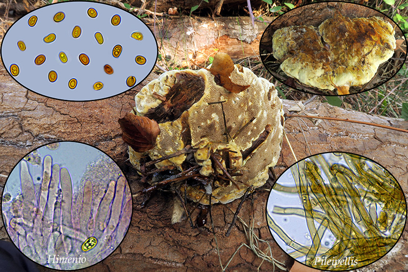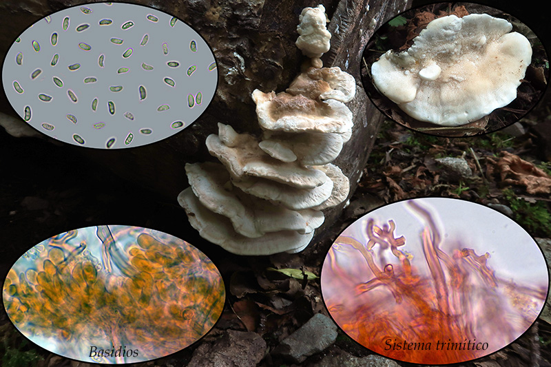 Un Panellus, aunque no pude obtener esporas, toda la microscopía obtenida, así como el aspecto macroscópico y hábitat, apuntan al