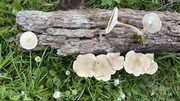 Podéis ayudarme con estas setas que he encontrado esta mañana en un encinar como a 700 metros, en una rama medio podrida de encina. Sombrero de unos 5 centímetros la mayor y muy piléico, tanto que al principio son redondeados pero luego los pelillos sobresalen del sombrero y presentan una zona central diferente al resto, color cremoso, los "poros" forman como un panal dividiéndose como en alveolos que son más grandes por el centro que por el borde y la base del mismo color qye el sombrero. El pìé es corto y está rayado pelillos negruzcos. no la he olido ni probado.